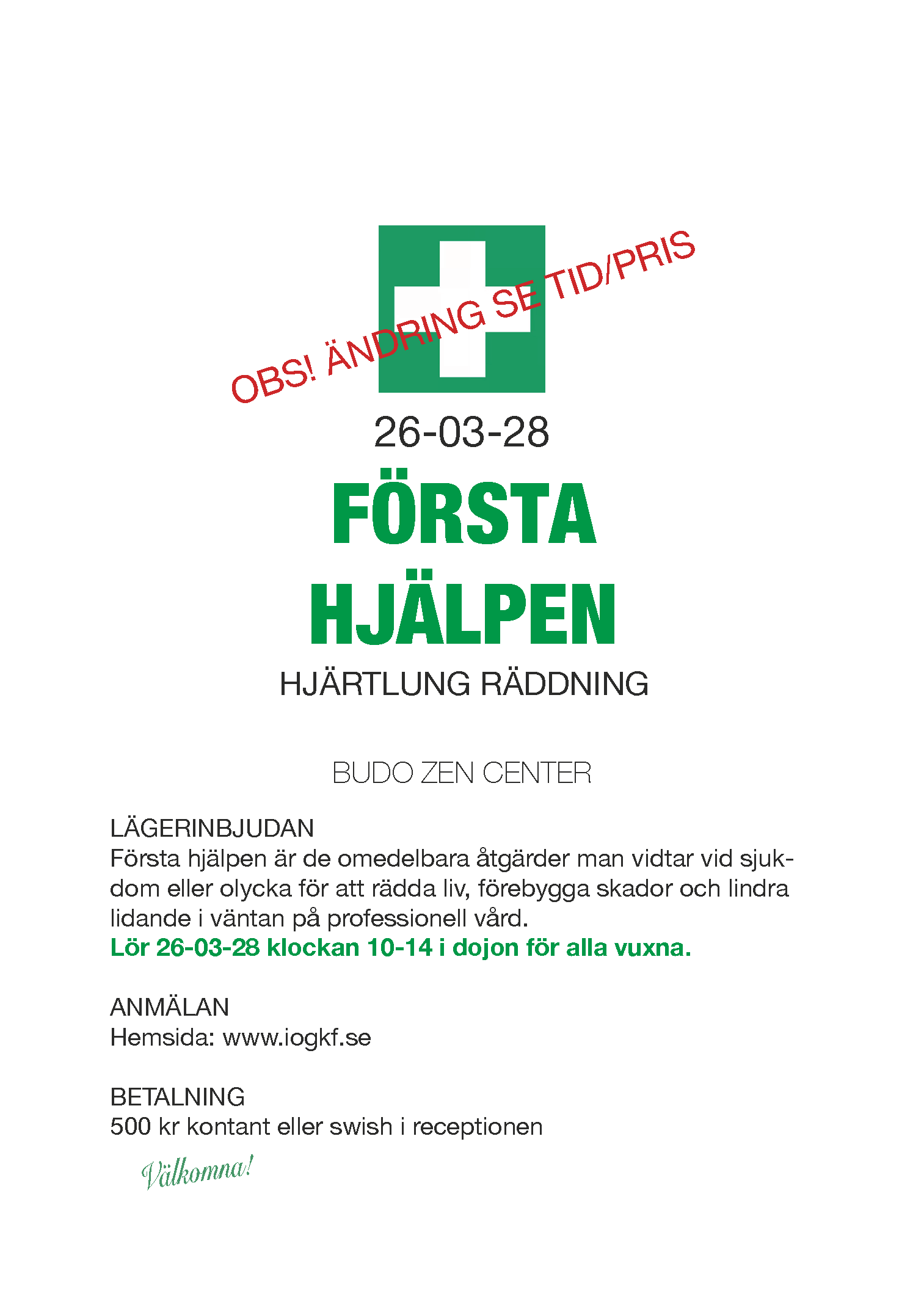 28/3 Första hjälpenkurs ANMÄLL DIG HÄR Hela namnet Förnamn Efternamn E-post Telefon Klubb Klubb - Välj -Budo Zen CenterÖrnsköldsviks Goju Ryu KararteklubbOkinawa Goyu Ryu SödertörnVarbergs Goju ryu Karate-do DojoAnnat... Enter other… Grad Grad - Välj -Ograd10 Kyu9 Kyu8 Kyu7 Kyu6 Kyu5 Kyu4 Kyu3 Kyu2 Kyu1 Kyu1 Dan2 Dan3 Dan4 Dan5 Dan6 Dan7 Dan8 Dan9 DanAnnat... Enter other… Anteckningar